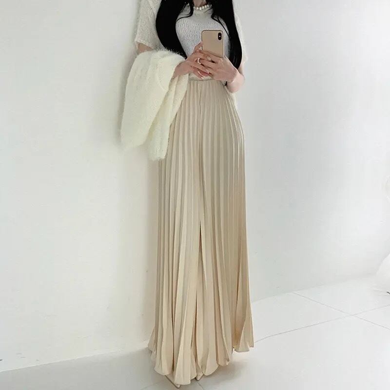 軽やかな動きを叶えるプリーツフレアパンツ。