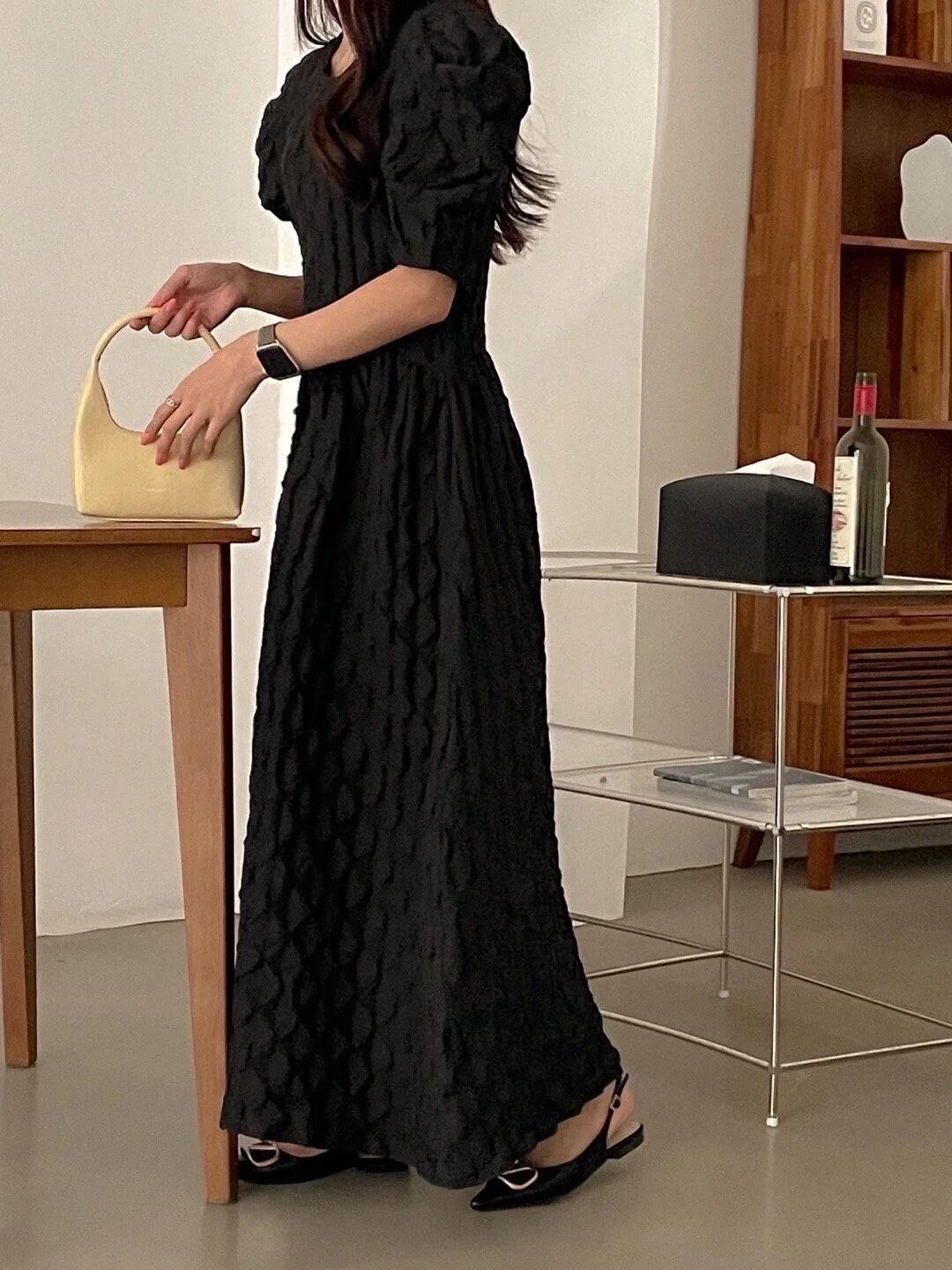華やかなフェミニンスタイルが叶う、パフショルダーワンピース。