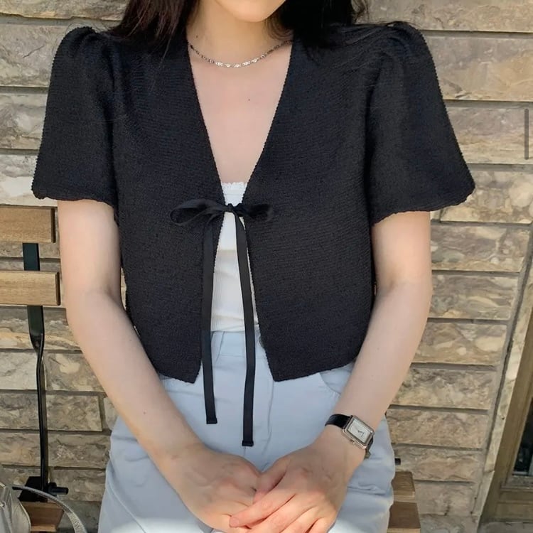 甘くてフェミニンな半袖リボンジャケットです。