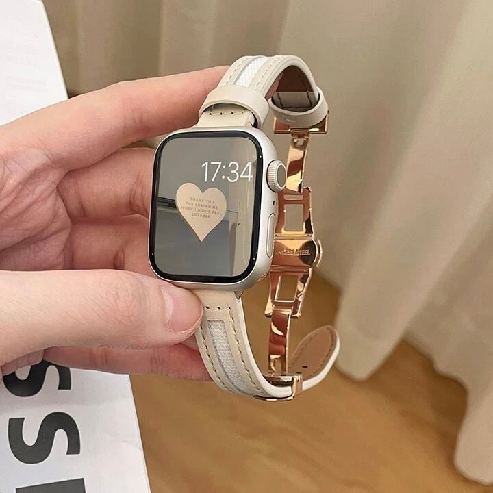 Apple Watchにピッタリフィットするデザインで、手元のアクセントにぴったりです。